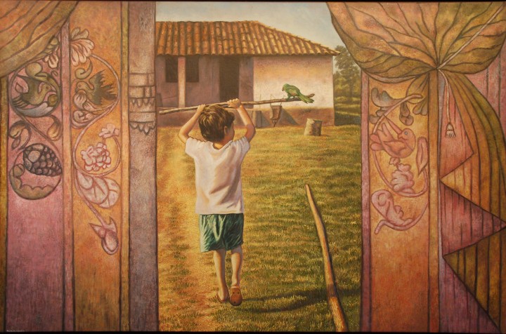 acrylic,coloured pencil,and birch bark on paper 22×15 inches 2012
